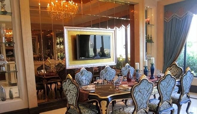 除了远景,李湘还晒出多张别墅内景细节图。雕花实木楼梯扶手搭配水晶吊灯,墙面挂着的油画装裱精致,就连角落摆放的绿植盆栽,都配着造型考究的陶瓷花盆。最让人印象深刻的是一张餐桌特写,描金餐具整齐摆放,桌布质感厚重,旁边的酒柜里摆满了各类红酒,不难看出主人对生活品质的追求。