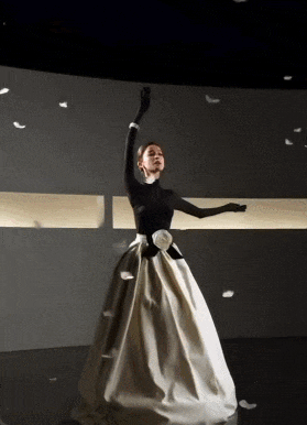 真的用了心,直接搬出了一套出自上世纪Nia Ricci1987年春夏高定系列的经典代表作,花神降临了~