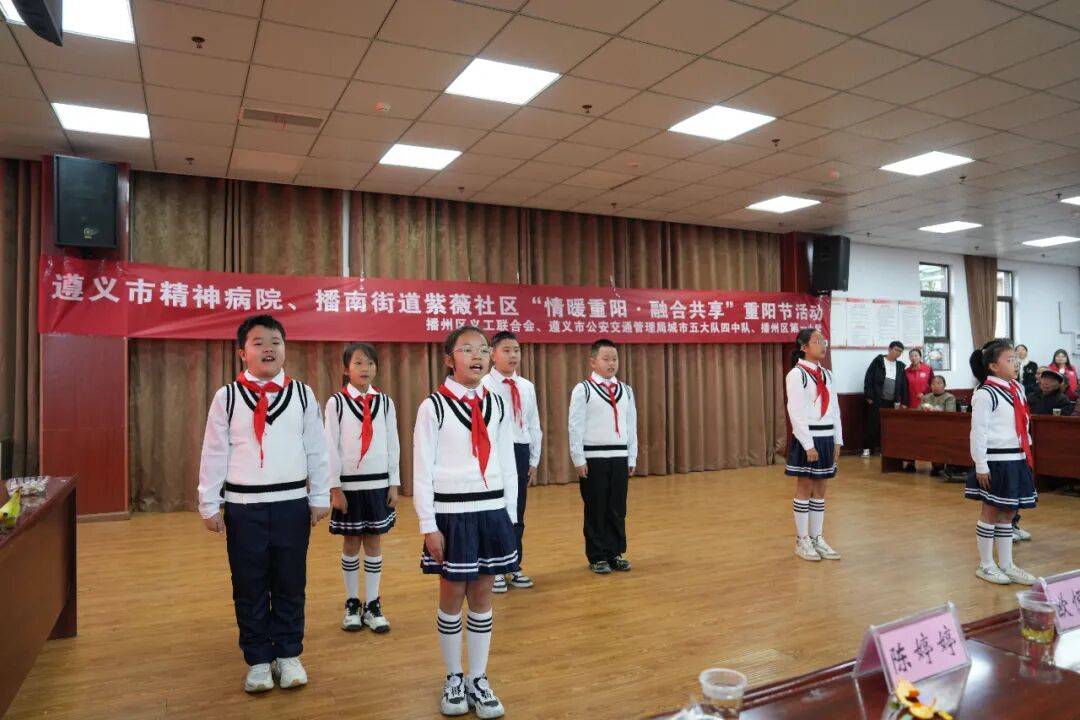 为弘扬尊老敬老的优良传统,丰富易地扶贫搬迁安置小区老人的精神文化生活,10月24日,播南街道紫薇社区开展以“情暖重阳·融合共享”为主题的重阳节系列活动。遵义市精神病院、播州区义工联合会、播州区第一小学等单位共同参与,为社区老人带去一场温馨祥和的节日陪伴。